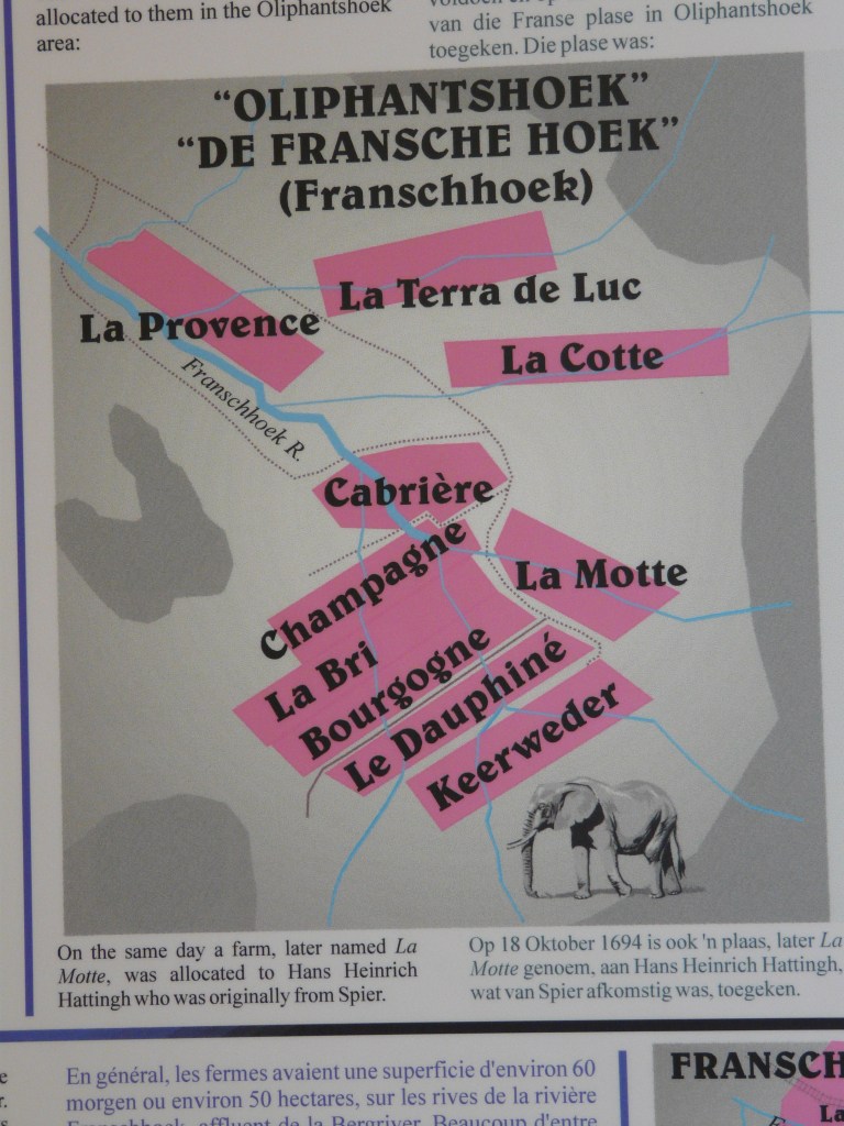 Les Protestants, HUGUENOTS, de la FLANDRE jusqu’au LANGUEDOC et au LUBERON préfèrent s’exiler, suite à la révocation de l’EDIT de NANTES. Plus d’un quart sont des VAUDOIS du LUBERON (voir article Luberon SUD) qui savent travailler la terre et la vigne. En débarquant dans la baie de la TABLE (Table Bay), ils remontent jusqu’à une barrière montagneuse, et s’installent sur une terre fertile et plantent leurs vignes.