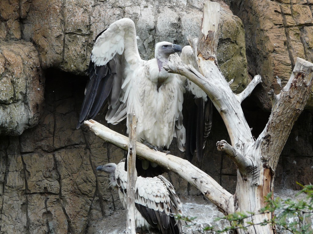 Marabout, flamand rose, vautours, félins et tigre blanc, phacochère et petit hippopotame, crocodiles, lémuriens et suricates
