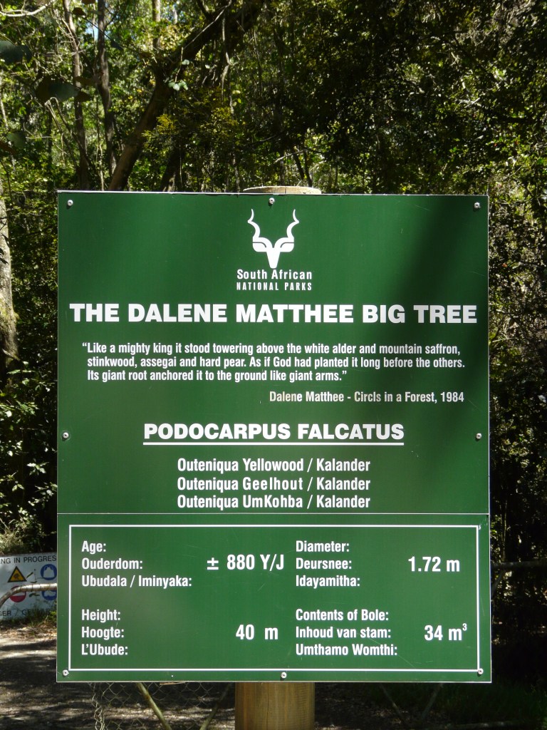 Dans la forêt primaire, sur les lieux des romans de Dalene MATTHEE et son mémorial près de ce BIG TREE de plus de 800 ans.