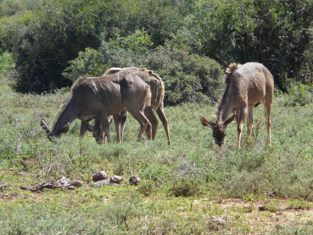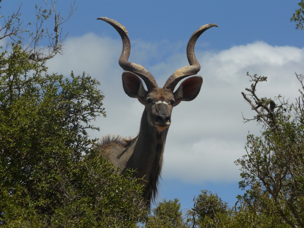 Les majestueux koudous reconnaissables à leurs cornes. A noter que le koudou a une viande excellente.